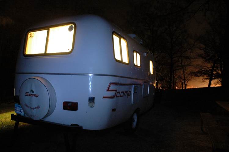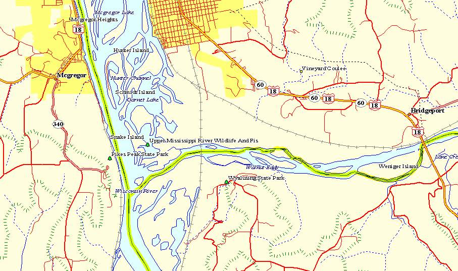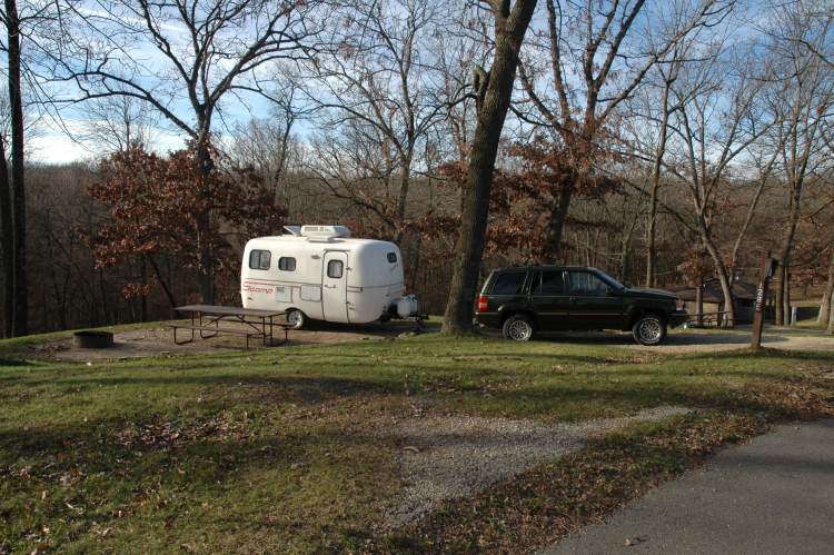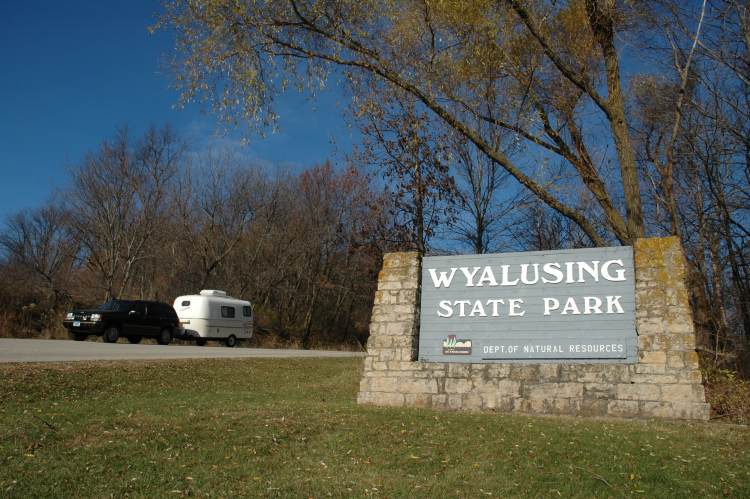 When we had seen the train, we traveled to southeastern Wisconsin and stayed overnight (25k) in Wyalousing State Park (63k), near Prairie Du Chein, Wisconsin (map-115k). Along the way we enjoyed the fall colors (or what was left (81k) at this late date).